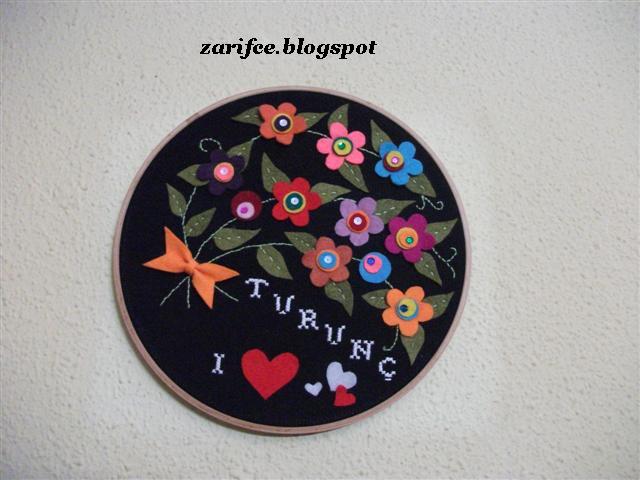 Ortasını boyamayı resimleri yüklerken akıl ettim ancak.Kurdele biraz ince kaçtı. Eski eşantiyon saatte böylece duvarımızda yerini aldı.